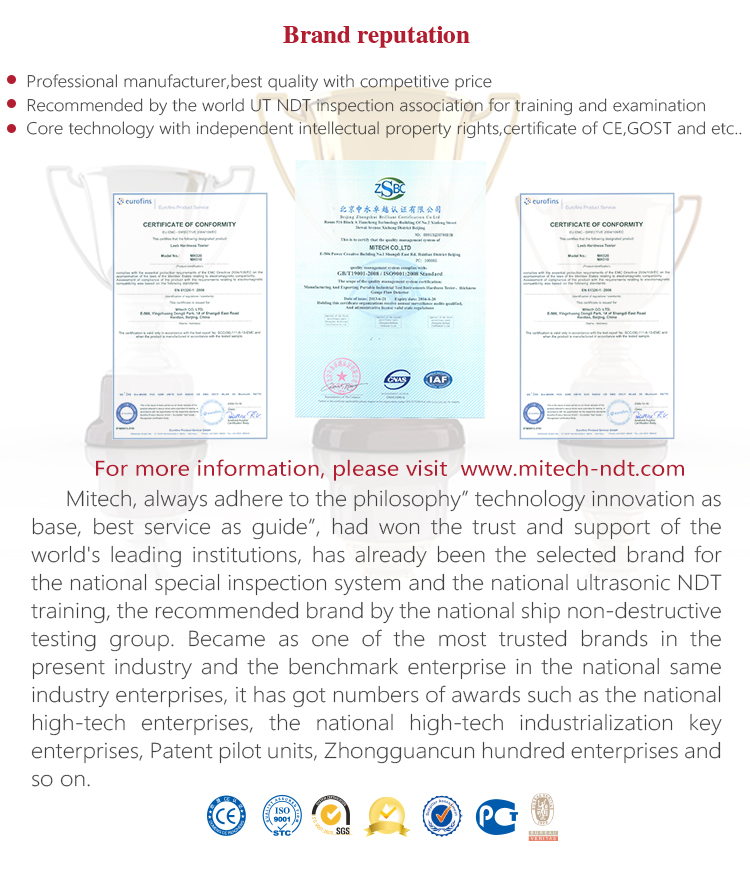 | Mitech Series portable leeb hardness testers with customized attached files including product certificate, warranty card, product manual, packing list. The attached files adopt the special printed paper. The manual is with graphic design, beautiful, easy to understand, easy to save for a long time. Note: The electronic version of Mitech attached files can be downloaded from m.innitorpower.com. |