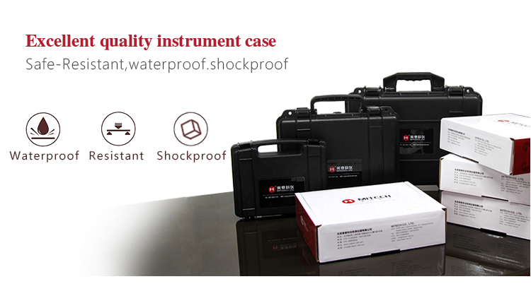 | The instrument case of Mitech series portable leeb hardness, length 35.5cm, width 19cm, height 11cm, weight of 1.5kg. Adopt ABS engineering plastic, It has excellent peroformance like waterproof, shockproof, excellent heat resistance and low temperature resistance. It can effectively prevent oil, dust and corrosion in harsh environment. Its size is in accordance with the standards for aviation and train carrying (capable of putting under the seat and on the luggage rack), it is safe, reliable and stable. |