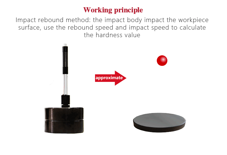 Working PrincipleThe basic principle is to use an impact body of certain weight impacts against the testing surface under certain test force, then measure the impacting velocity and the rebounding velocity of the impact body respectively when the spherically test tip is located 1mm above the testing surface.