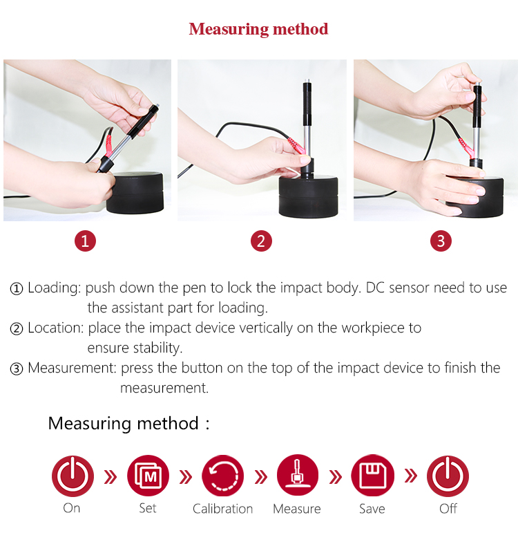 ----Press the release button on the upside of the impact device to test. The sample and the impact device as well as the operator are all required to be stable now. The action direction should pass the axis of the impact device.