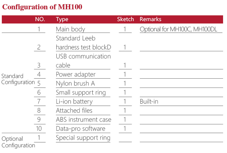 Product OverviewMH100 series pocket hardness meters, also known as pen-type hardness tester, based on Leeb hardness measuring principle, quick and easy on-site test the hardness of series metal materials, support free conversion between Richter, Brinell, Rockwell hardness scale and others,integrated compact design, small size, portable, highly integrated, stable and reliable performance, supporting data transfer and print the stored function. Widely used in failure analysis of metal processing and manufacturing, special equipment, permanent assembly, inspection and other fields. Particularly suitable for large parts and non-removable part of the site hardness testing. It is professional precision instrument to improve the pass rate of production and cost savings .