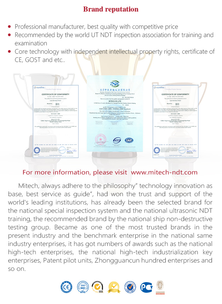 | Mitech Series portable leeb hardness testers with customized attached files including product certificate, warranty card, product manual, packing list. The attached files adopt the special printed paper. The manual is with graphic design, beautiful, easy to understand, easy to save for a long time. Note: The electronic version of Mitech attached files can be downloaded from m.innitorpower.com. |