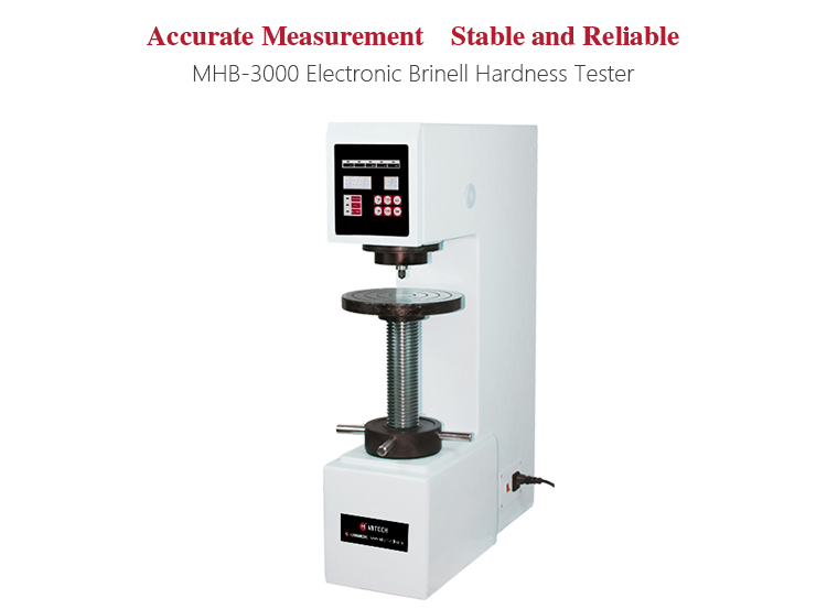 Mitech MHB-3000 Electronic Brinell Hardness Tester, based on the mechanical principle of hard alloy indenter pressing into the sample surface to produce indentation, realizing the material hardness measurement by measuring the diameter of the indentation , it is novel and high reliable with accurately measurement. LED eight digital tubes and luminescent secondary tube display, simple operation, it can visually display the test results to meet the hardness testing requirement for the quality control and qualified assessment of the workpiece sample. It is widely used in metal processing and manufacturing, various metal material’s failure analysis and other fields like colleges and research institutions. It is the new type Brinell hardness testing instrument for testing the hardness of the materials like cast iron, steel, soft alloy and so on.