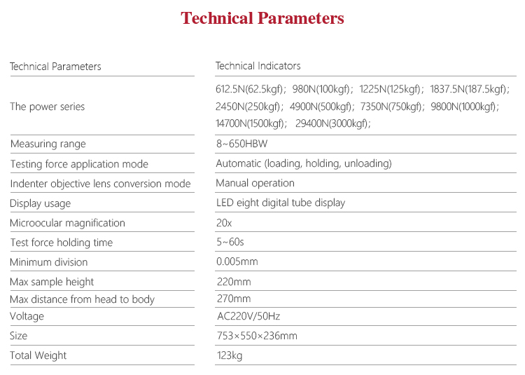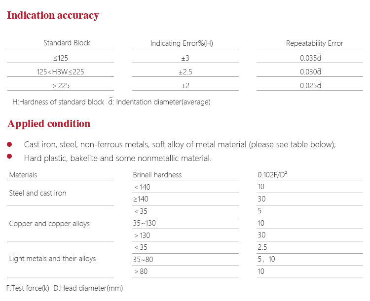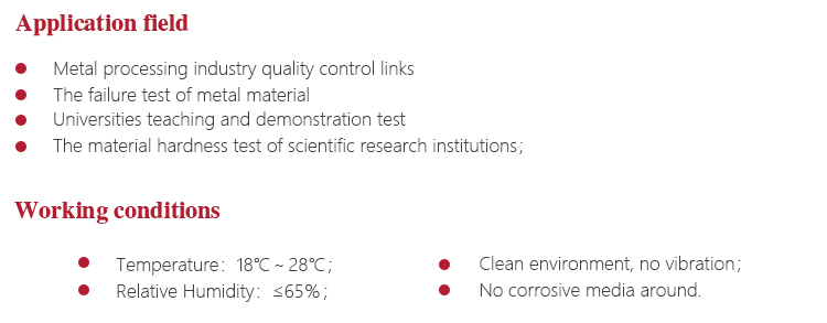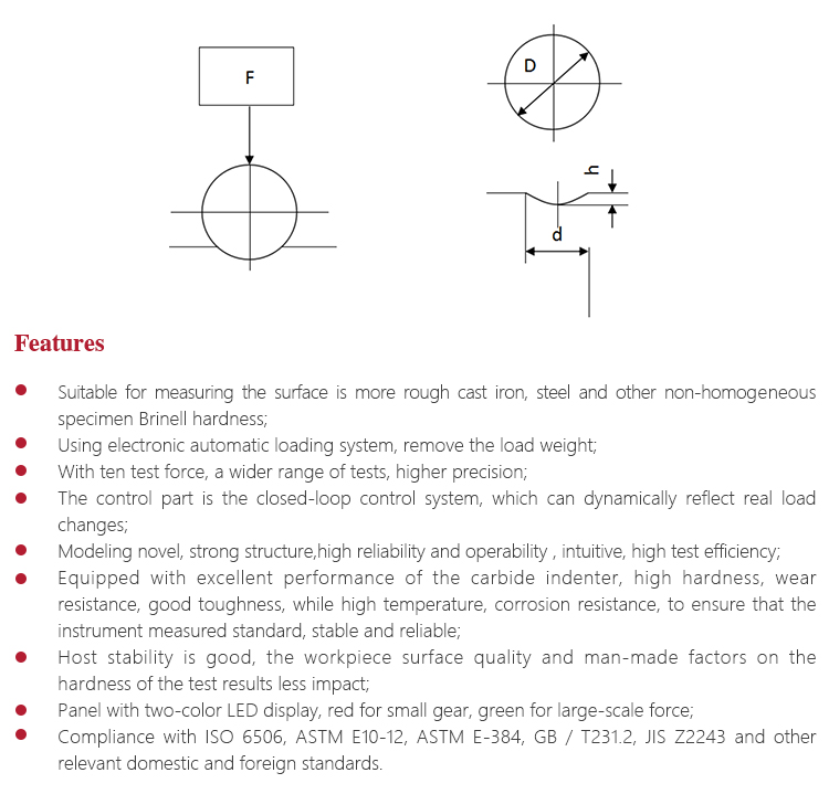 Suitable for measuring the surface is more rough cast iron, steel and other non-homogeneous specimen Brinell hardness;