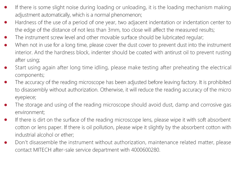 the hardness block, indenter should be coated with antirust oil to prevent rusting after using.