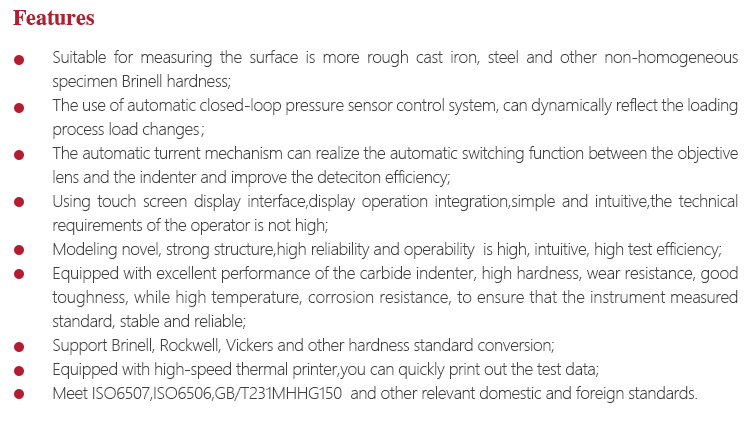 l Suitable for measuring the surface is more rough cast iron, steel and other non-homogeneous specimen Brinell hardness;