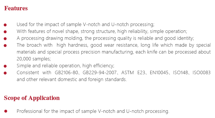 l Used for the impact of sample V-notch and U-notch processing;