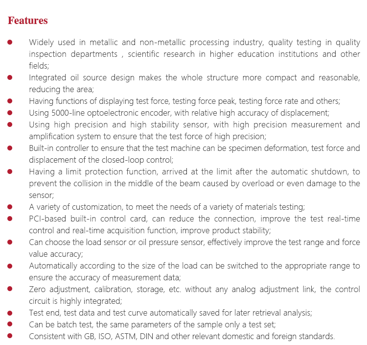 l Built-in controller to ensure that the test machine can be specimen deformation, test force and displacement of the closed-loop control;
