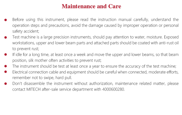 l Don’t disassemble the instrument without authorization, maintenance related matter, please contact MITECH after-sale
