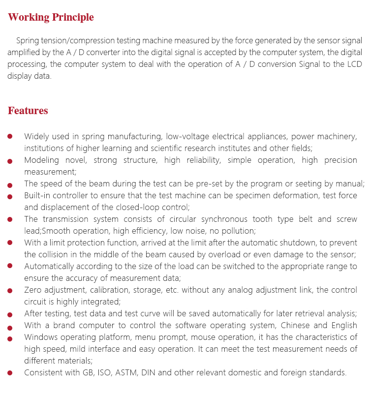 Instrument Featuresl Widely used in spring manufacturing, low-voltage electrical appliances, power machinery, institutions of higher learning and