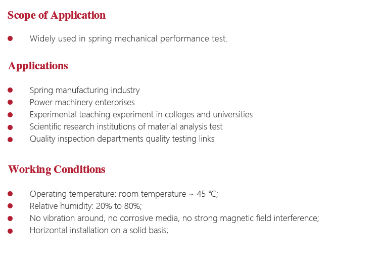 Instrument Featuresl Widely used in spring manufacturing, low-voltage electrical appliances, power machinery, institutions of higher learning and