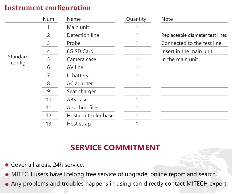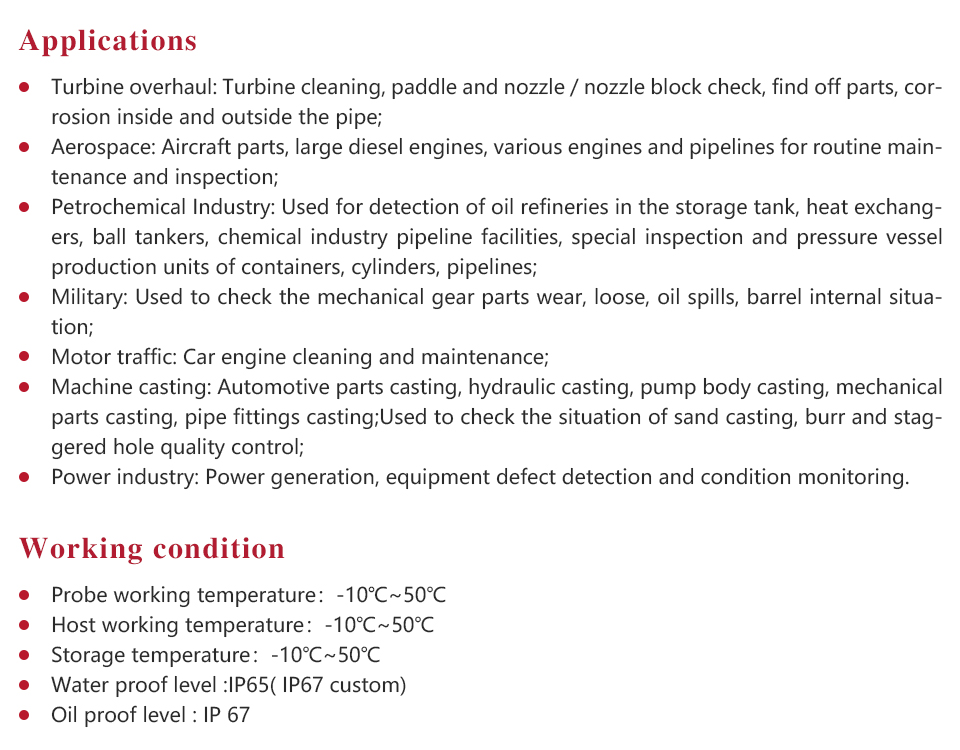 l After use, do not soak the product, the soft cloth can be used to clean the probe and mirror host, and then into the ABS case, so as not to cause corrosion or damage to the instrument;