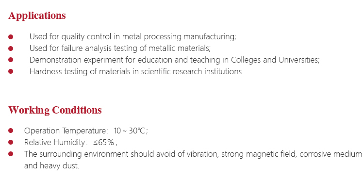 l Widely used for high-precision hardness testing for parts with a variety of metal and non-metallic materials;