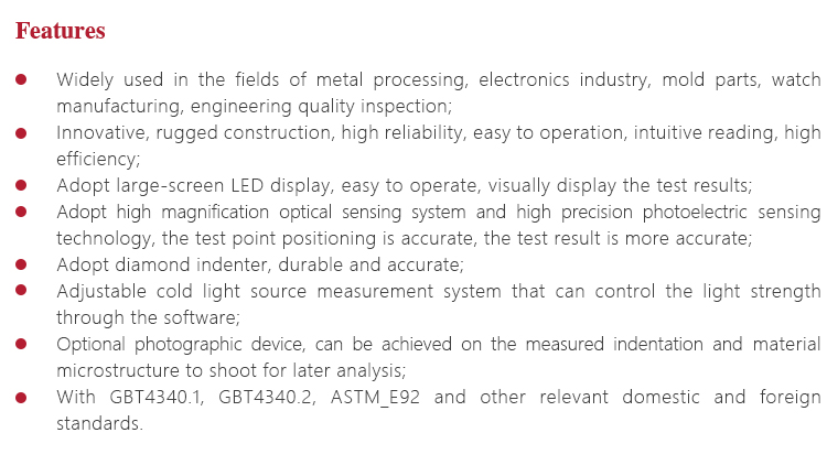 With GBT4340.1, GBT4340.2, ASTM_E92 and other relevant domestic and foreign standards.