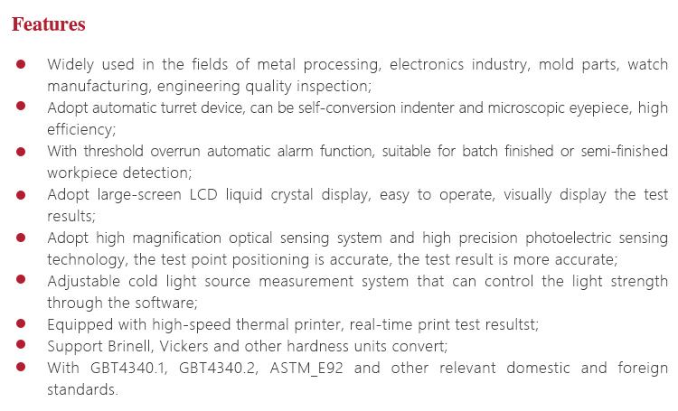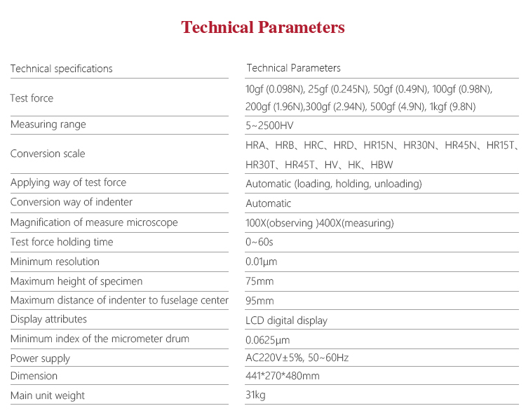 | Measuring range | 5~2500HV |