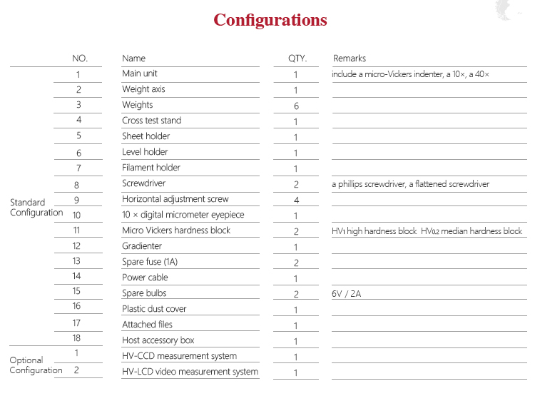 | Test force | 10gf (0.098N), 25gf (0.245N), 50gf (0.49N), 100gf (0.98N), 200gf (1.96N), 300gf (2.94N), 500gf (4.9N |