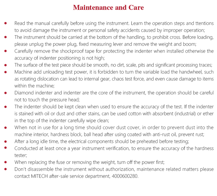 l Don’t disassemble the instrument without authorization, maintenance related matters please contact MITECH after-sale