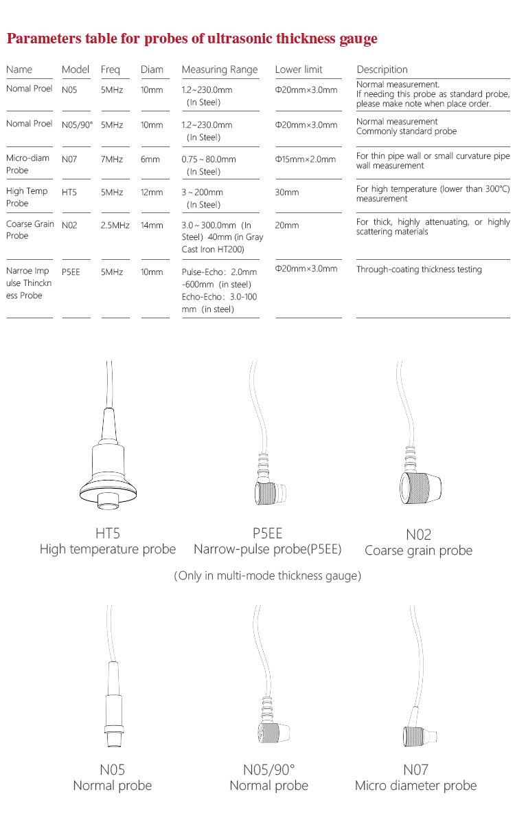 Probe Diameter Standard Probe P5EE is 10mm, Probe N05 is10MM、Probe N07 is 6MM、Probe HT5 is12MM、Probe N02 is12MM
