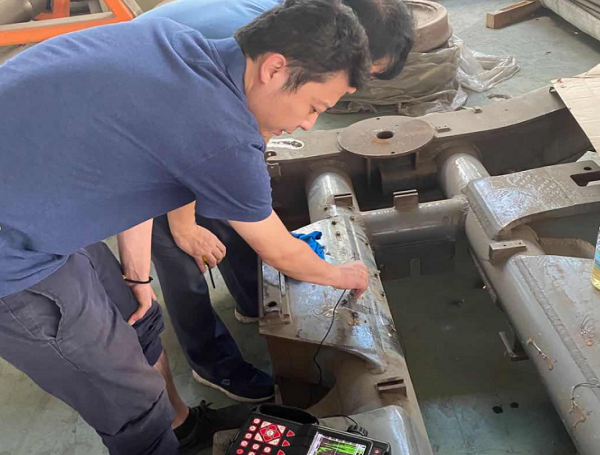 2020年8月26日,北京美泰科儀協(xié)同北京某大學(xué)教授一起來到北京某地鐵運(yùn)營公司進(jìn)行現(xiàn)場探傷試驗(yàn),為地鐵的無損檢測工作設(shè)計(jì)實(shí)施方案。目前在役地鐵要求每滿5年進(jìn)行一次全面維檢,主要檢測部件是地鐵轉(zhuǎn)向架等關(guān)鍵部件,檢測部位有轉(zhuǎn)向架與電機(jī)、減速箱連接處板材的焊縫等?,F(xiàn)有檢測手段是將相關(guān)配件從裝向架上拆除后,對轉(zhuǎn)向架進(jìn)行脫漆處理,然后用磁粉探傷儀對焊縫進(jìn)行探傷。由于當(dāng)前檢測手段只能對焊縫表面進(jìn)行檢測,特邀請美泰技術(shù)工程師協(xié)助現(xiàn)場演示并探討超聲波探傷儀對焊縫檢測的具體方案。