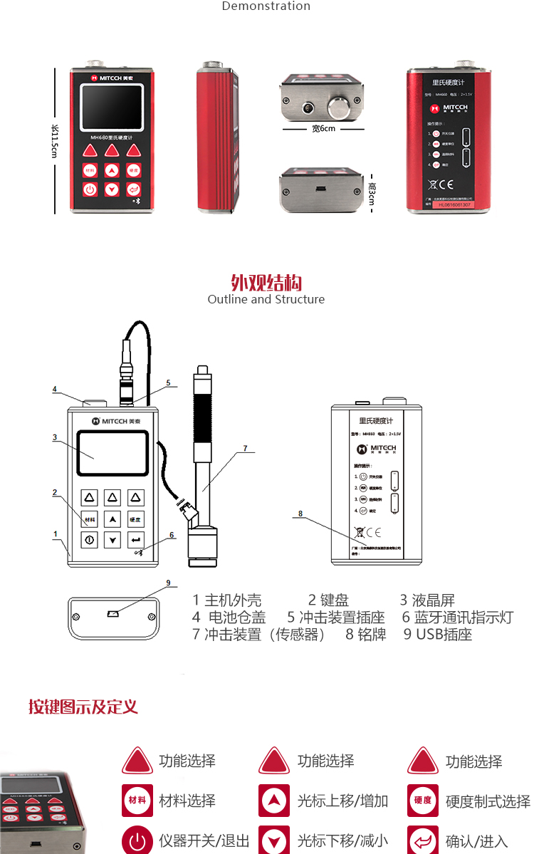 | 測(cè)量材料 | ?鋼和鑄鋼、合金工具鋼、不銹鋼、灰鑄鐵、球墨鑄鐵、鑄鋁合金、銅鋅合金(黃銅)、銅錫合金(青銅)、純銅、鍛鋼; |