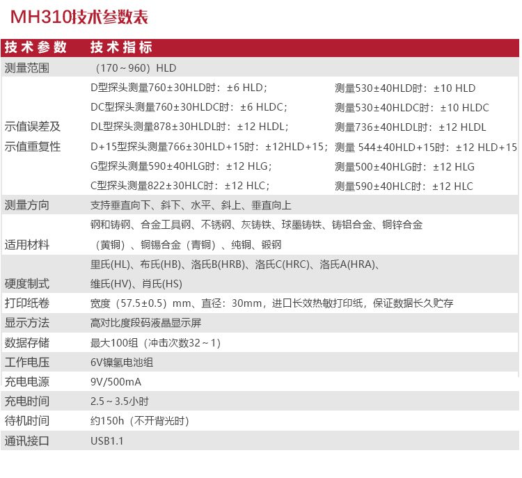 產(chǎn)品概述MH310便攜式里氏硬度計基于里氏硬度測量原理,可方便快捷地現(xiàn)場檢測多種金屬材料的硬度,支持里氏、布氏、洛氏等多種硬度制氏間的自由轉(zhuǎn)換。它采用高對比度段碼式液晶屏,顯示清晰,性能穩(wěn)定,集成一體式高速熱敏打印機,可現(xiàn)場即時打印測量結(jié)果。被廣泛應(yīng)用于退火、回火、淬火熱處理工件的質(zhì)量控制;機床導(dǎo)軌、汽車底盤的硬度檢測;大型不可拆卸零部件的現(xiàn)場在役硬度測試;五金、鍛造、機床、特種鋼材的質(zhì)量檢測;批量生產(chǎn)過程中產(chǎn)品的質(zhì)量控制等,質(zhì)優(yōu)價廉,實用經(jīng)濟,是硬度檢測常規(guī)需求的明智之選。