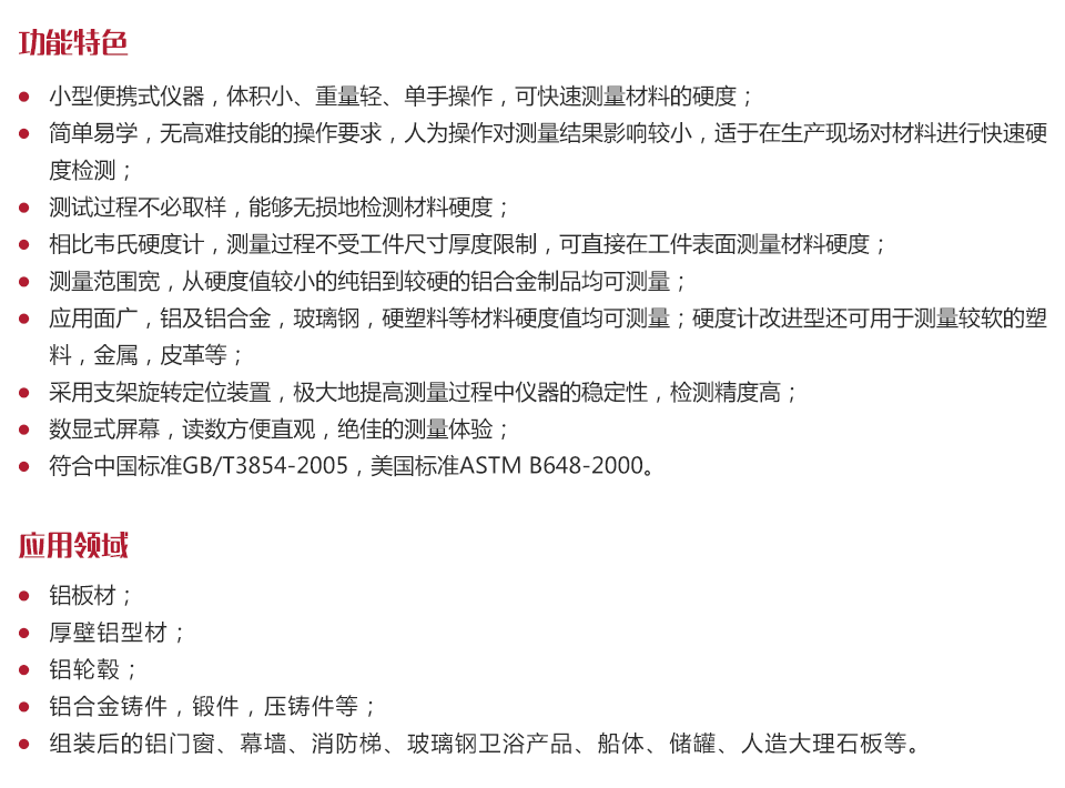 測(cè)量范圍寬,從硬度值較小的純鋁到較硬的鋁合金制品均可測(cè)量;
