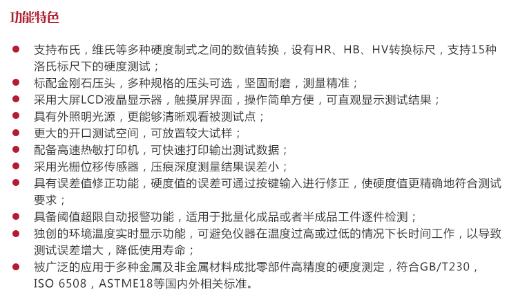 | 執(zhí)行標(biāo)準(zhǔn) | GB/T230, ISO 6508,ASTM E18 |