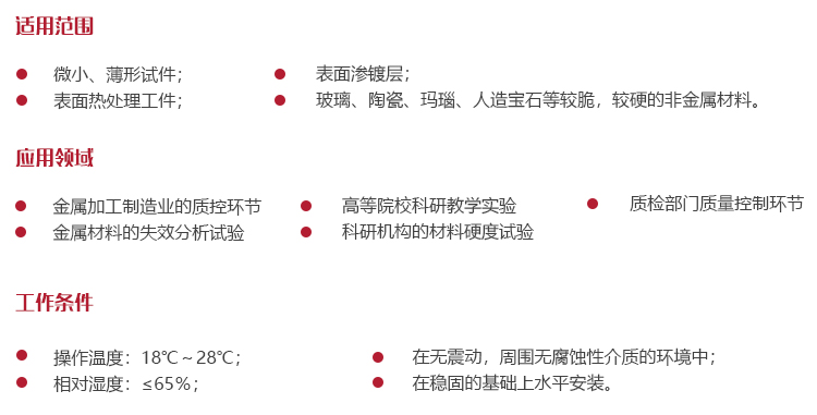 儀器特點(diǎn)廣泛適用于微小試件、薄形試件、熱處理工件等進(jìn)行表面(滲鍍層)的維氏硬度試驗(yàn),可滿足科研機(jī)構(gòu),精密的加工制造業(yè)及質(zhì)檢部門等材料試驗(yàn)的需求;