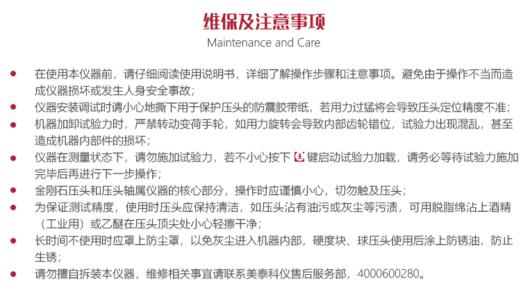 ?長(zhǎng)時(shí)間不使用時(shí)應(yīng)罩上防塵罩,以免灰塵進(jìn)入內(nèi)部,硬度塊、球壓頭使用后涂上防銹油,防止生銹;