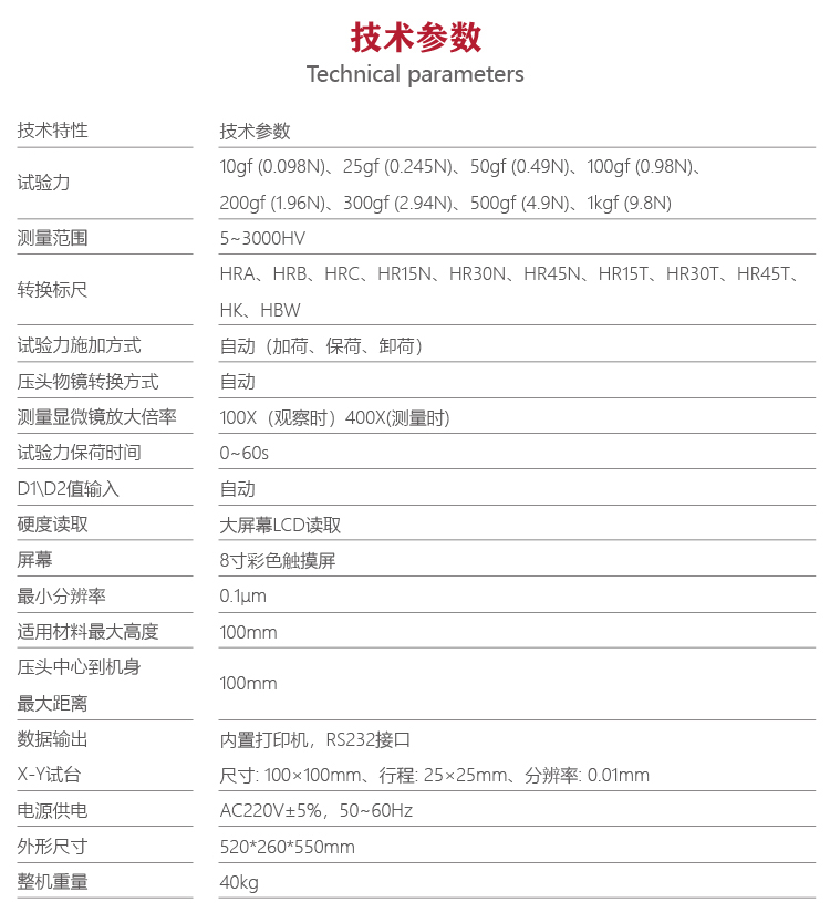 | 試驗(yàn)力 | 10gf (0.098N)、25gf (0.245N)、50gf (0.49N)、100gf (0.98N)、 200gf (1.96N)、300gf (2.94N)、500gf (4.9N)、1kg |