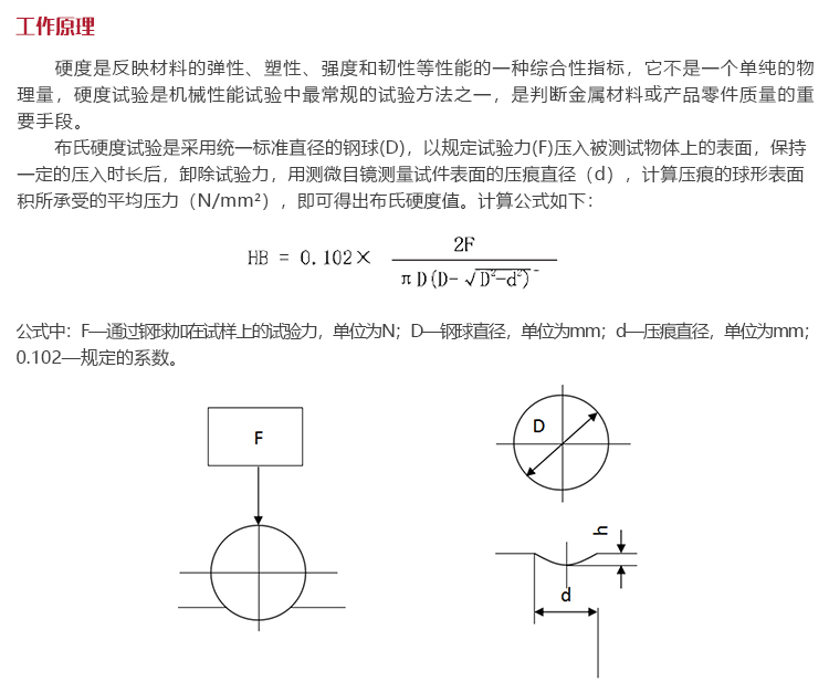 公式中:F:通過鋼球加在試樣上的試驗力,單位為N;