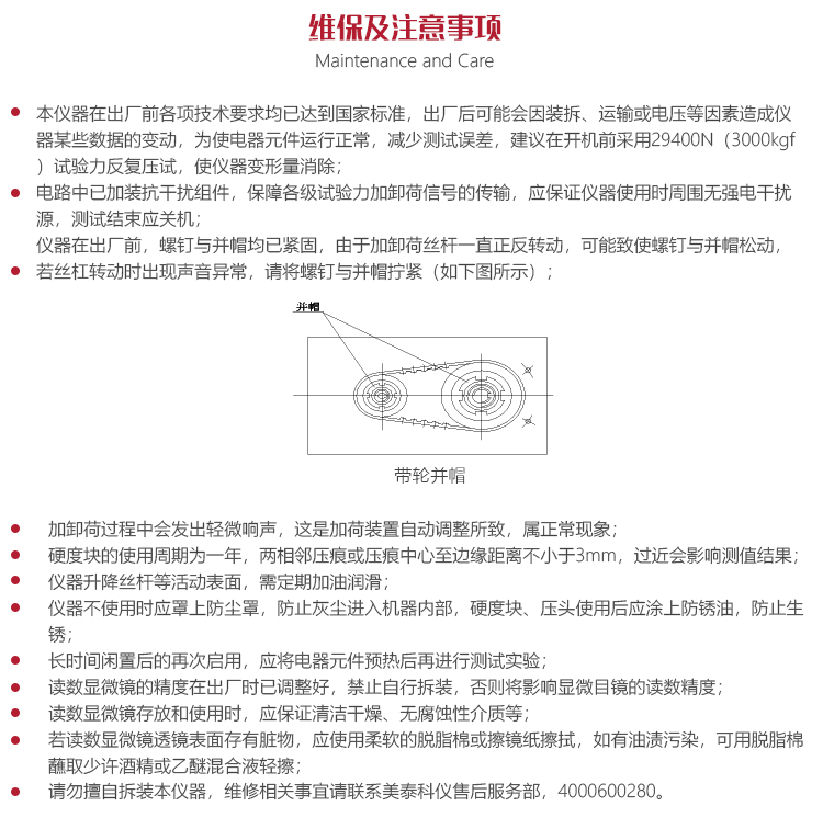 儀器的保養(yǎng)與維護美泰MHBS-3000Z觸摸屏自動轉(zhuǎn)塔數(shù)顯布氏硬度計屬精密檢測儀器,使用中應(yīng)特別注意如下事項: