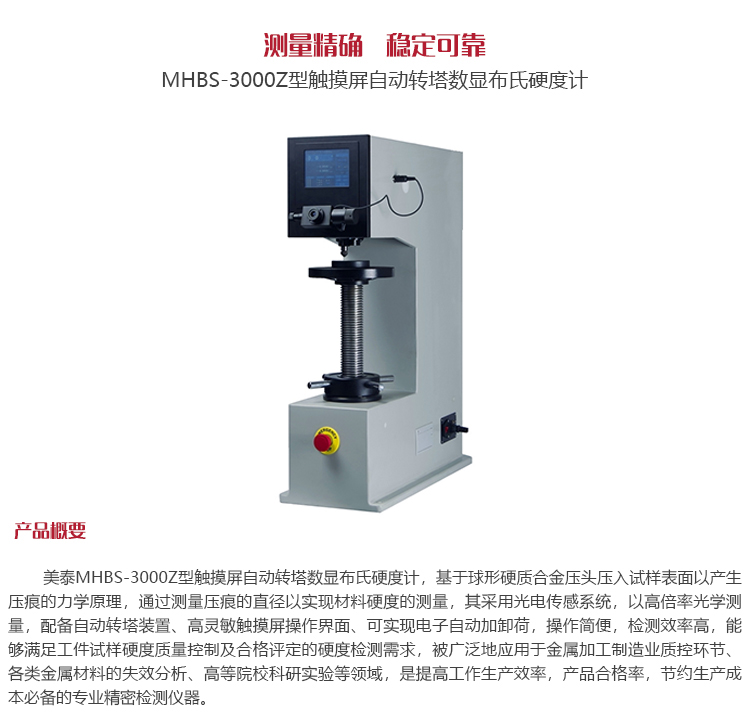 美泰MHBS-3000Z型觸摸屏自動轉(zhuǎn)塔數(shù)顯布氏硬度計,基于球形硬質(zhì)合金壓頭壓入試樣表面以產(chǎn)生壓痕的力學(xué)原理,通過測量壓痕的直徑以實現(xiàn)材料硬度的測量,其采用光電傳感系統(tǒng),以高倍率光學(xué)測量,配備自動轉(zhuǎn)塔裝置、高靈敏觸摸屏操作界面、可實現(xiàn)電子自動加卸荷,操作簡便,檢測效率高,能夠滿足工件試樣硬度質(zhì)量控制及合格評定的硬度檢測需求,被廣泛地應(yīng)用于金屬加工制造業(yè)質(zhì)控環(huán)節(jié)、各類金屬材料的失效分析、高等院??蒲袑嶒灥阮I(lǐng)域,是提高工作生產(chǎn)效率,產(chǎn)品合格率,節(jié)約生產(chǎn)成本必備的專業(yè)精密檢測儀器。