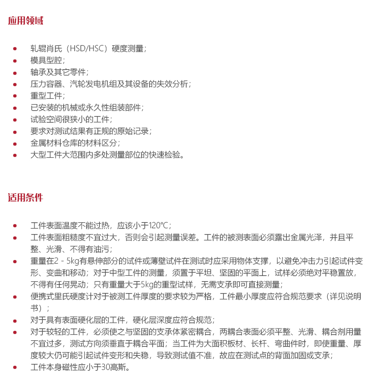 l 便攜式里氏硬度計對于被測工件厚度的要求較為嚴格,工件最小厚度應符合規(guī)范要求(詳見說明書)。