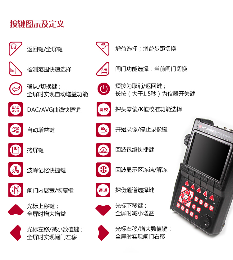 | 定位 | 實時顯示缺陷水平、深度(垂直)、聲程位置 |