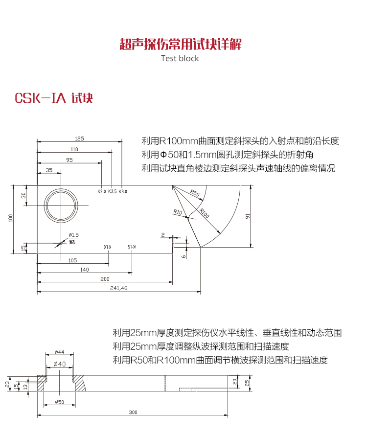 | 2.5P、Φ20、K2,各部件可拆卸,是進行斜射探傷用的探頭,主要用于橫波探傷。 | |