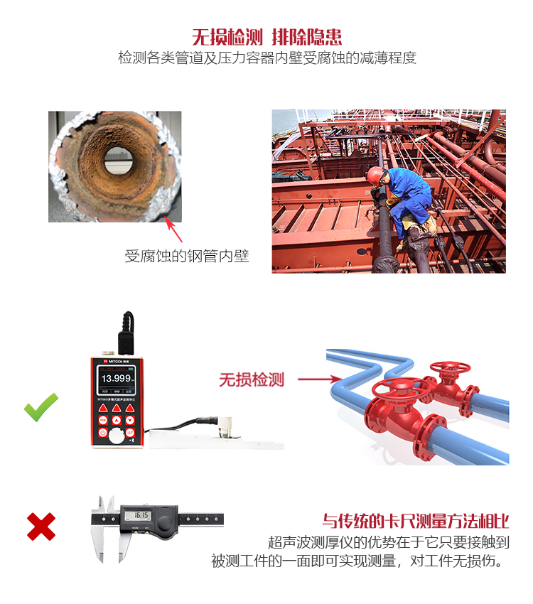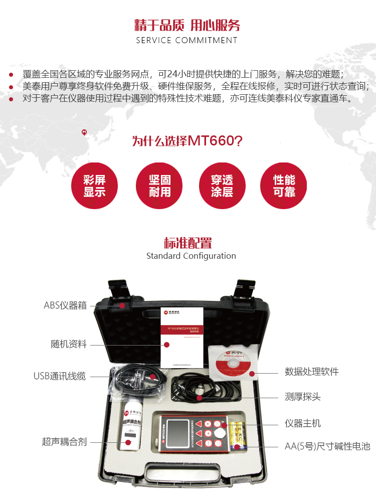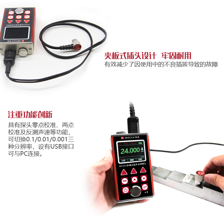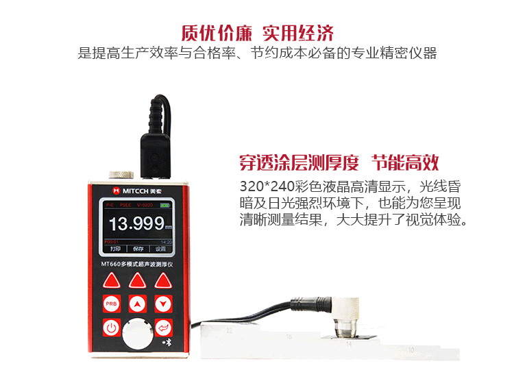 MT660超聲波測(cè)厚儀是美泰公司最新推出的升級(jí)產(chǎn)品,它更加注重用戶體驗(yàn)及功能創(chuàng)新,采用320×240彩色液晶顯示屏,光線昏暗及日光強(qiáng)烈環(huán)境下也能為您呈現(xiàn)清晰測(cè)量結(jié)果,大大提升了視覺(jué)體驗(yàn),密封的鋁美合金外殼精巧設(shè)計(jì),體積更小、品質(zhì)更優(yōu),專為防御惡劣現(xiàn)場(chǎng)環(huán)境中的油污、粉塵而設(shè)計(jì);智能化警示功能,超出設(shè)定范圍可自動(dòng)提示,可方便讀數(shù),滿足高效采集材料多點(diǎn)厚度的精準(zhǔn)檢測(cè)需求,支持0.001高精度顯示、藍(lán)牙通訊,兼?zhèn)浯┩竿繉幽J脚c普通模式雙效功能,其獨(dú)特的可穿透涂層測(cè)厚度的性能為表面涂有油漆或防腐材料的工件厚度檢測(cè)提供了更加高效的解決方案,測(cè)量前無(wú)需處理掉表面的涂層,直接亦可測(cè)量。被廣泛應(yīng)用于石油、化工、冶金、造船、航空、航天等領(lǐng)域的生產(chǎn)設(shè)備中各種管道及壓力容器腐蝕減薄程度的監(jiān)測(cè),也可用于對(duì)各種板材及各種加工零件做精確的測(cè)量。是提高生產(chǎn)效率與合格率、節(jié)約成本必備的專業(yè)精密儀器。