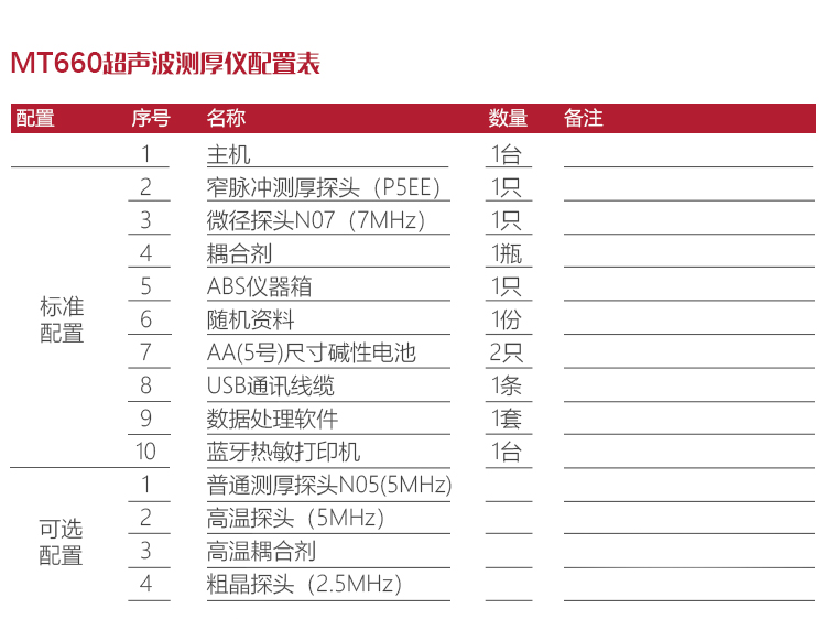 探頭直徑 測(cè)厚探頭NO5直徑10MM、微晶探頭N07直徑6MM、高溫探頭HT5直徑12MM、窄脈沖測(cè)厚探頭P5EE直徑10MM、粗晶探頭直徑12MM
