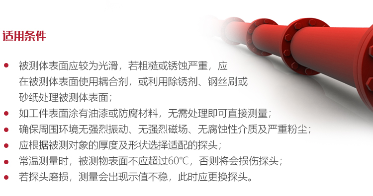 適用于測(cè)量金屬(如鋼、鑄鐵、鋁、銅等)、塑料、陶瓷、玻璃、玻璃纖維及其他任何超聲波良導(dǎo)體的厚度