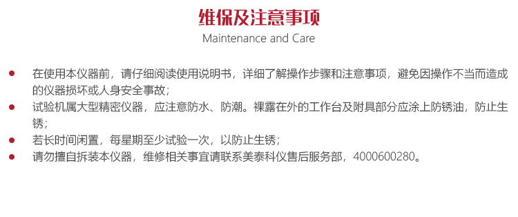 試驗(yàn)機(jī)屬大型精密儀器,應(yīng)注意防水、防潮。裸露在外的工作臺(tái)及附具部分應(yīng)涂上防銹油,防止生銹;