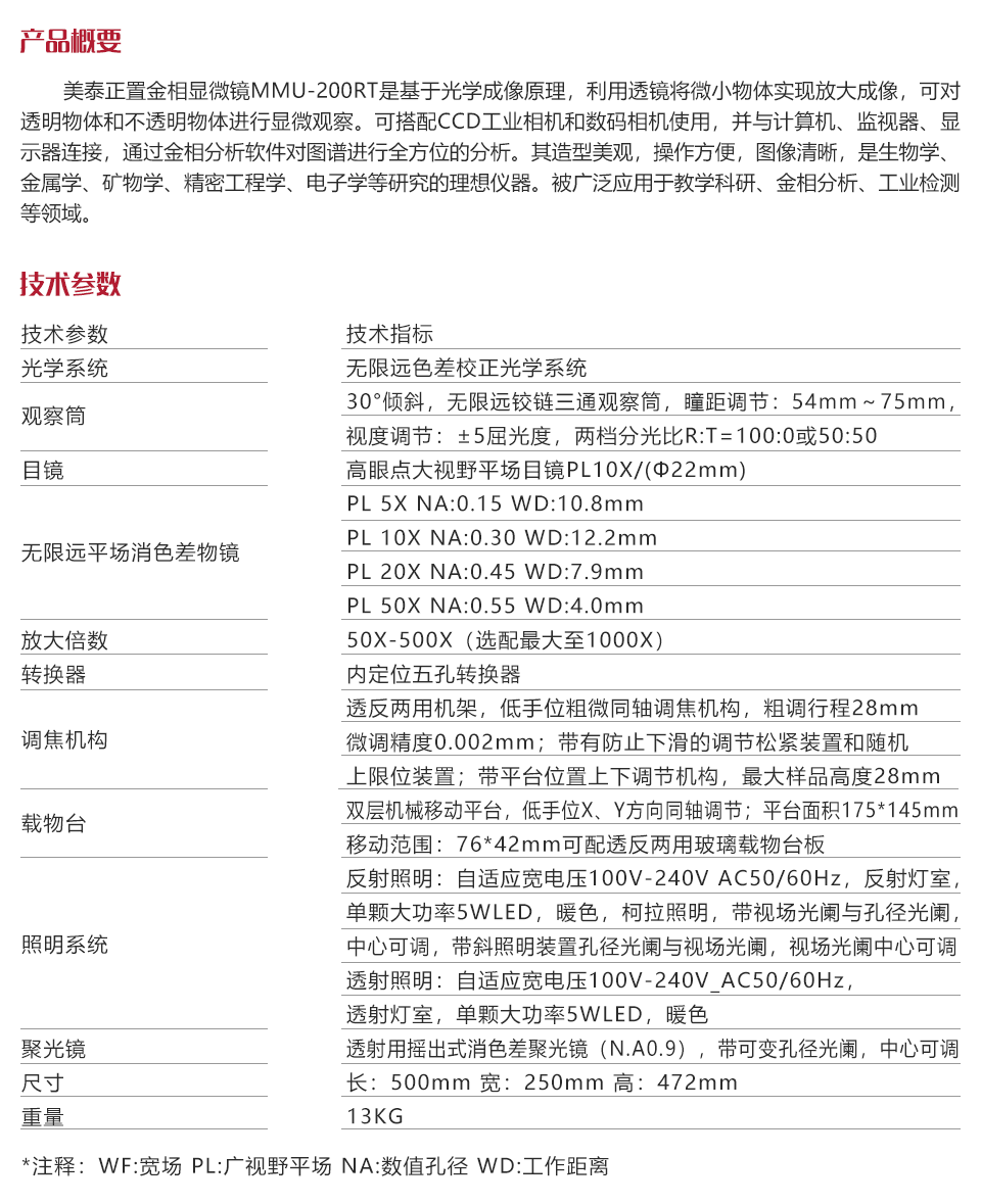 產(chǎn)品概述美泰正置金相顯微鏡MMU-200RT是基于光學(xué)成像原理,利用透鏡將微小物體實(shí)現(xiàn)放大成像,可對(duì)透明物體和不透明物體進(jìn)行顯微觀察。可搭配CCD工業(yè)相機(jī)和數(shù)碼相機(jī)使用,并與計(jì)算機(jī)、監(jiān)視器、顯示器連接,通過(guò)金相分析軟件對(duì)圖譜進(jìn)行全方位的分析。其造型美觀,操作方便,圖像清晰,是生物學(xué)、金屬學(xué)、礦物學(xué)、精密工程學(xué)、電子學(xué)等研究的理想儀器。被廣泛應(yīng)用于教學(xué)科研、金相分析、工業(yè)檢測(cè)等領(lǐng)域。