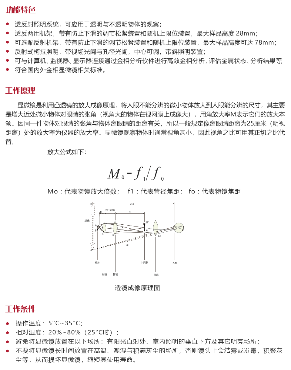 儀器特點(diǎn)透反射照明系統(tǒng),可應(yīng)用于透明與不透明物體的觀察;