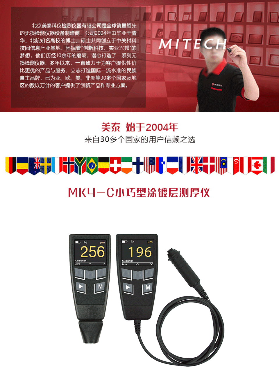 產(chǎn)品概述美泰進口多功能MK4-C小巧型涂鍍層測厚儀,該儀器可快捷、無損傷、精密地進行鐵磁性和非鐵磁性金屬材料上的涂層、涂漆、電鍍層、金屬層、粉末層、以及其他各類涂層的測量。且具有較大的工作溫度范圍,可滿足多種工況條件下對工件表面涂鍍層厚度的檢測需求。有一體式內(nèi)置集成探針和外接線纜探針兩種類型可供選擇,小巧方便,外形美觀,堅固耐用,是提高生產(chǎn)效率與合格率、節(jié)約生產(chǎn)成本必備的專業(yè)精密儀器。