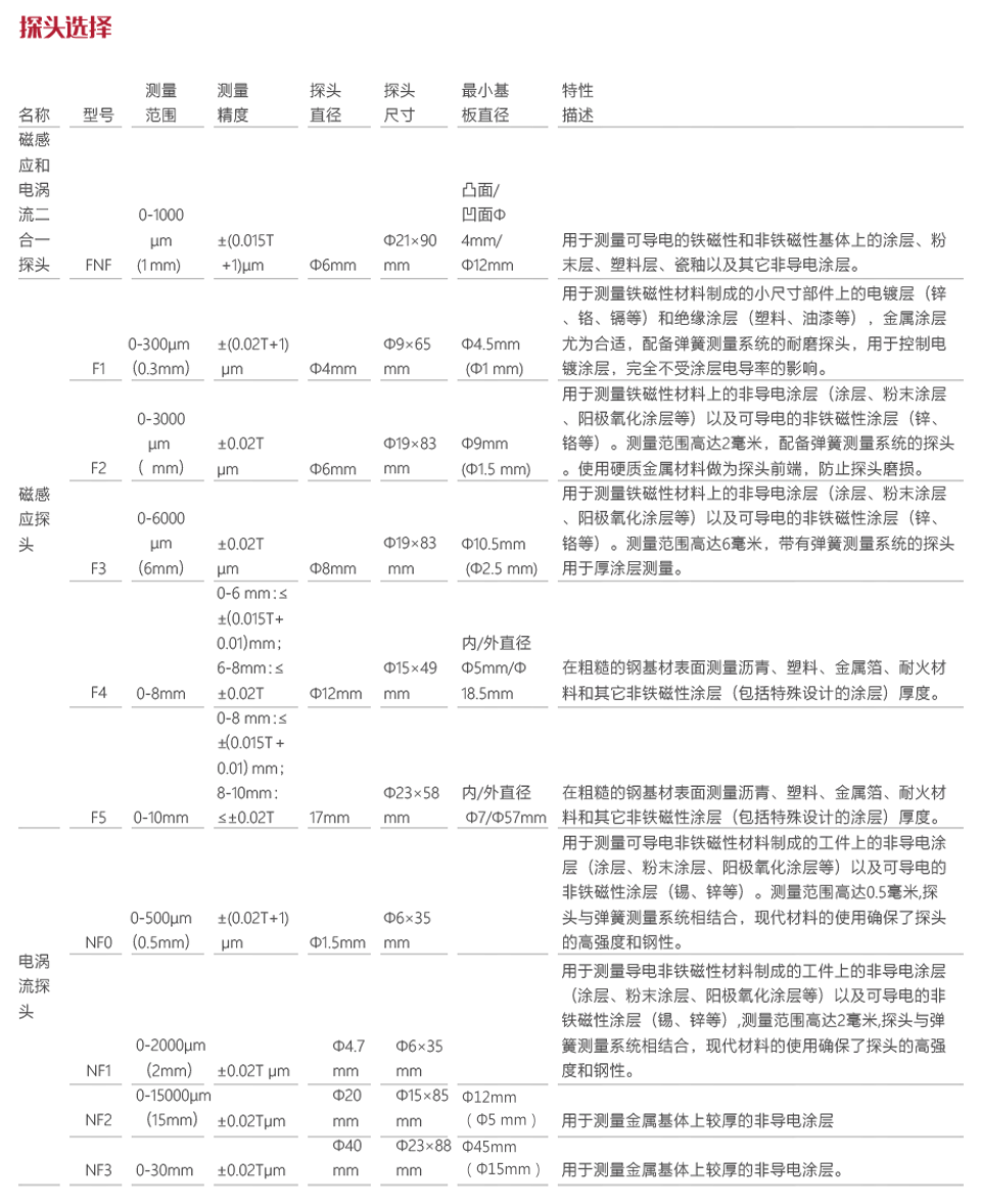 工作原理本儀器采用了渦流相、渦流參數(shù)(頻率)和脈沖磁感應的測厚方法,可無損地測量磁性金屬 (如鋼、鐵、鎳、合金和硬磁性鋼等) 基體上非磁性覆蓋層的厚度(如鋁、鉻、銅、琺瑯、橡膠、油漆等),及非磁性金屬基體(如銅、鋁、不銹鋼、鋅、錫等)上非導電覆蓋層的厚度(如:琺瑯、橡膠、油漆、塑料等)。