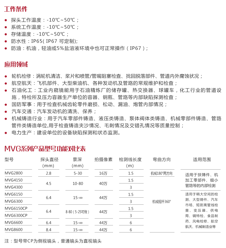 注:型號(hào)帶CP為側(cè)視鏡頭,普通鏡頭為直視鏡頭