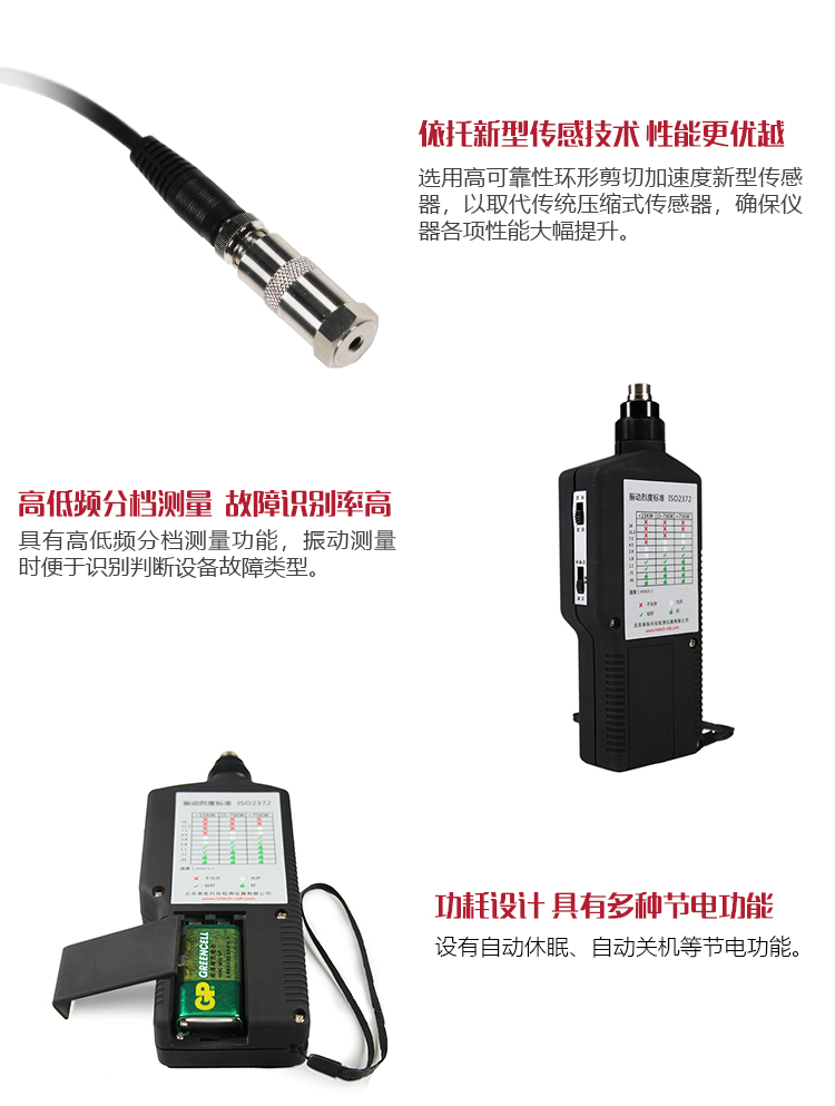 符合國際相關(guān)標準,測量值與國際振動烈度標準(ISO2372)比對可直接判斷設(shè)備運行狀態(tài);