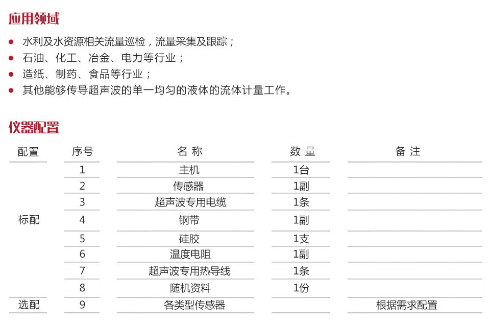 | 流體種類 | 水、海水、污水、酸堿液、酒精、啤酒、各種油類等能傳導(dǎo)超聲波的單一均勻液體 |