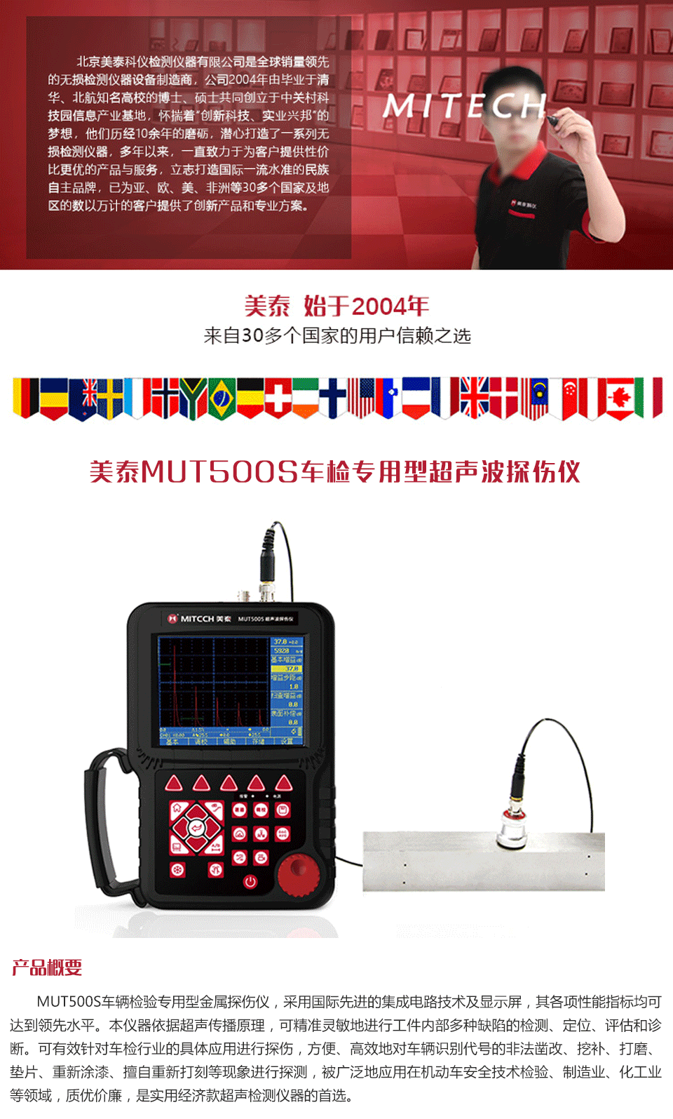產(chǎn)品概述MUT500S車輛檢驗(yàn)專用型金屬探傷儀,采用國際先進(jìn)的集成電路技術(shù)及顯示屏,其各項(xiàng)性能指標(biāo)均可達(dá)到領(lǐng)先水平。本儀器依據(jù)超聲傳播原理,可精準(zhǔn)靈敏地進(jìn)行工件內(nèi)部多種缺陷的檢測、定位、評估和診斷。可有效針對車檢行業(yè)的具體應(yīng)用進(jìn)行探傷,方便、高效地對車輛識別代號的非法鑿改、挖補(bǔ)、打磨、墊片、重新涂漆、擅自重新打刻等現(xiàn)象進(jìn)行探測,被廣泛地應(yīng)用在機(jī)動車安全技術(shù)檢驗(yàn)、制造業(yè)、化工業(yè)等領(lǐng)域,質(zhì)優(yōu)價廉,是實(shí)用經(jīng)濟(jì)款超聲檢測儀器的首選。