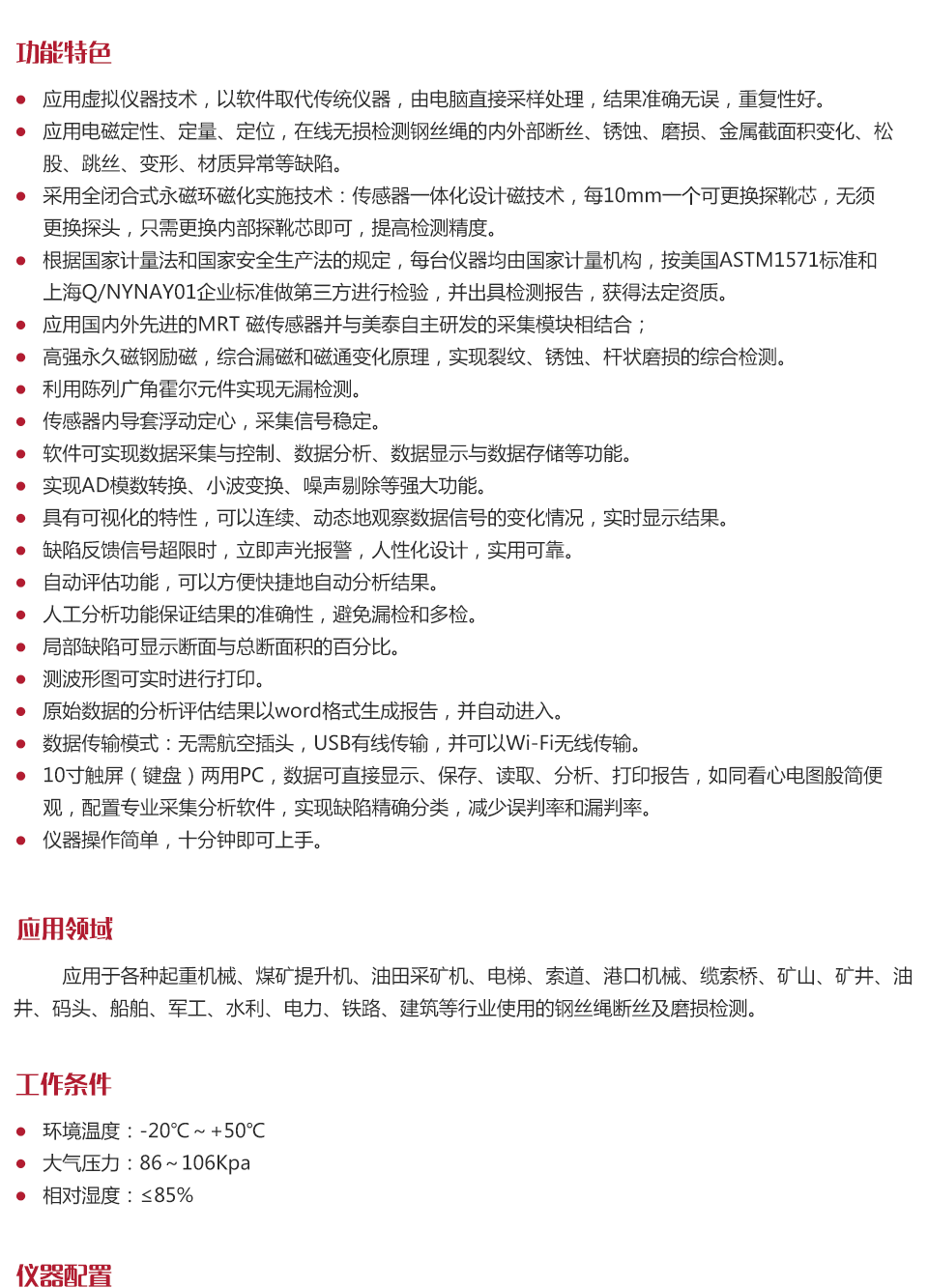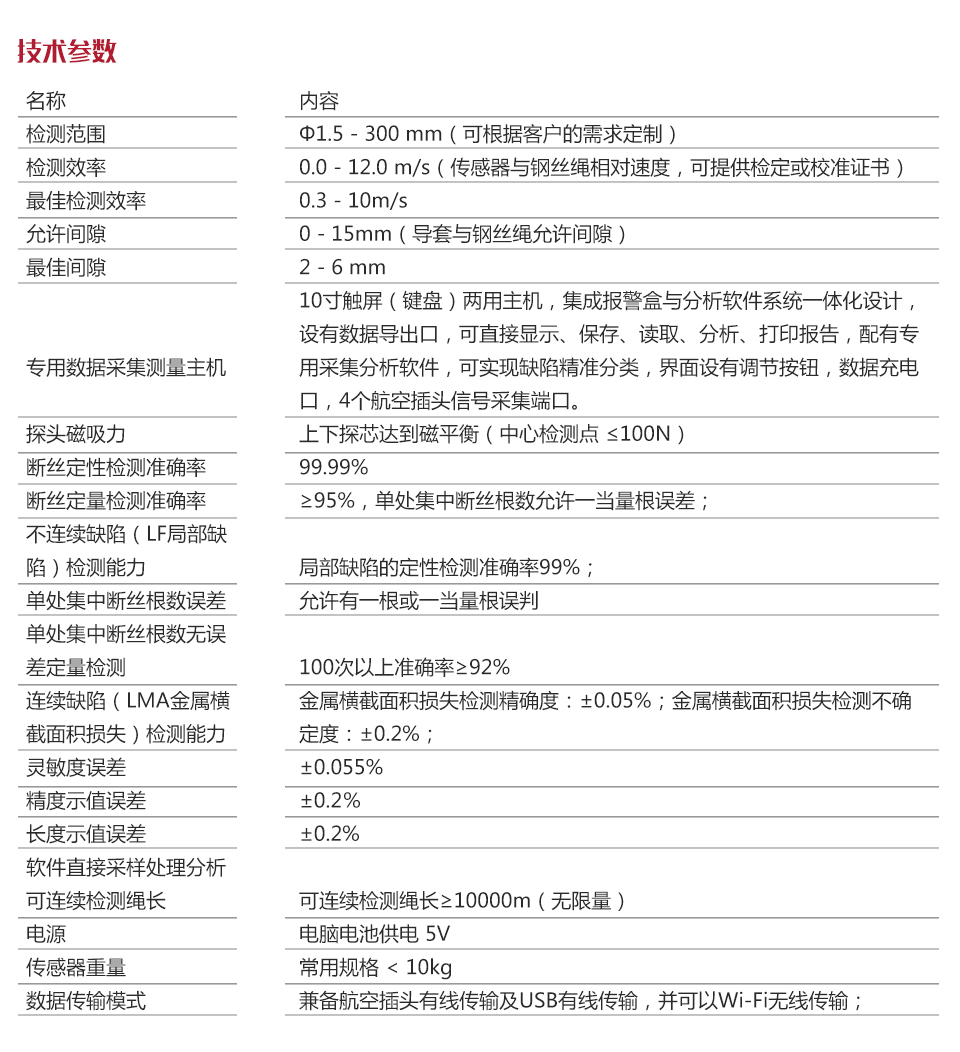 | 軟件直接采樣處理分析,可連續(xù)檢測繩長 | 可連續(xù)檢測繩長≥10000m(無限量) |