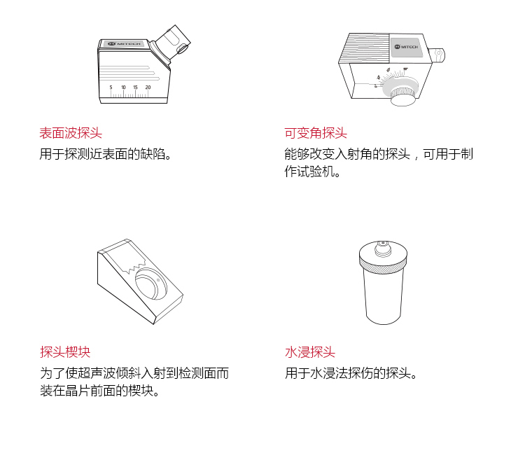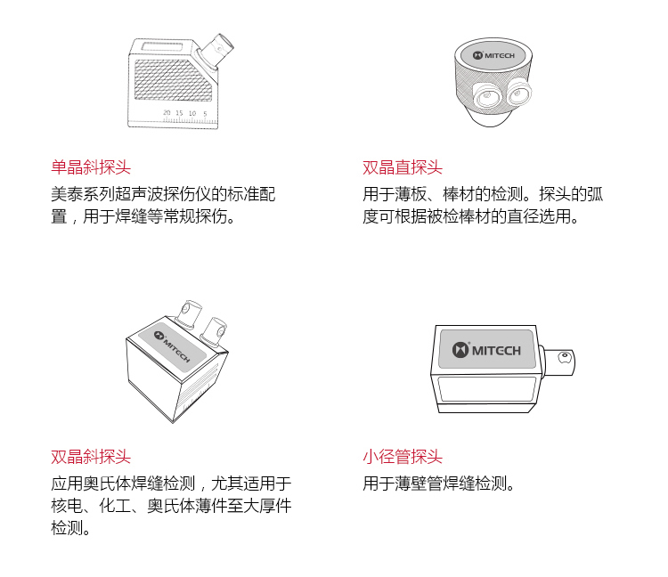 | 探頭類(lèi)型 | 直探頭、斜探頭、雙晶探頭、穿透探頭 |